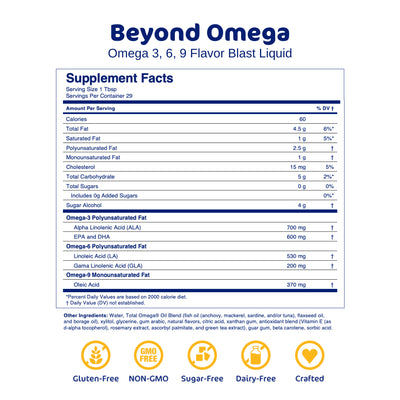 Inflammation is the underlying link to the majority of disorders and health challenges including: • Diabetes • Arthritis and Joint Health • Memory loss (Alzheimers) • Autism • Asthma • Cancer • Cardiovascular diseases • Vision issues • Lack of focus (ADD and ADHD) • Weak immune system • Lack of energy. A factor that has been studied to increase inflammation is the imbalance of omega-3 and omega-6 fatty acids. Standard American diets contain high amounts of omega-6, so supplementing your diet with omega-3 can help restore the balance and healthy inflammation levels. Our recommended supplement to fight this chronic inflammation and help prevent it from flaring up, is Beyond Omega.